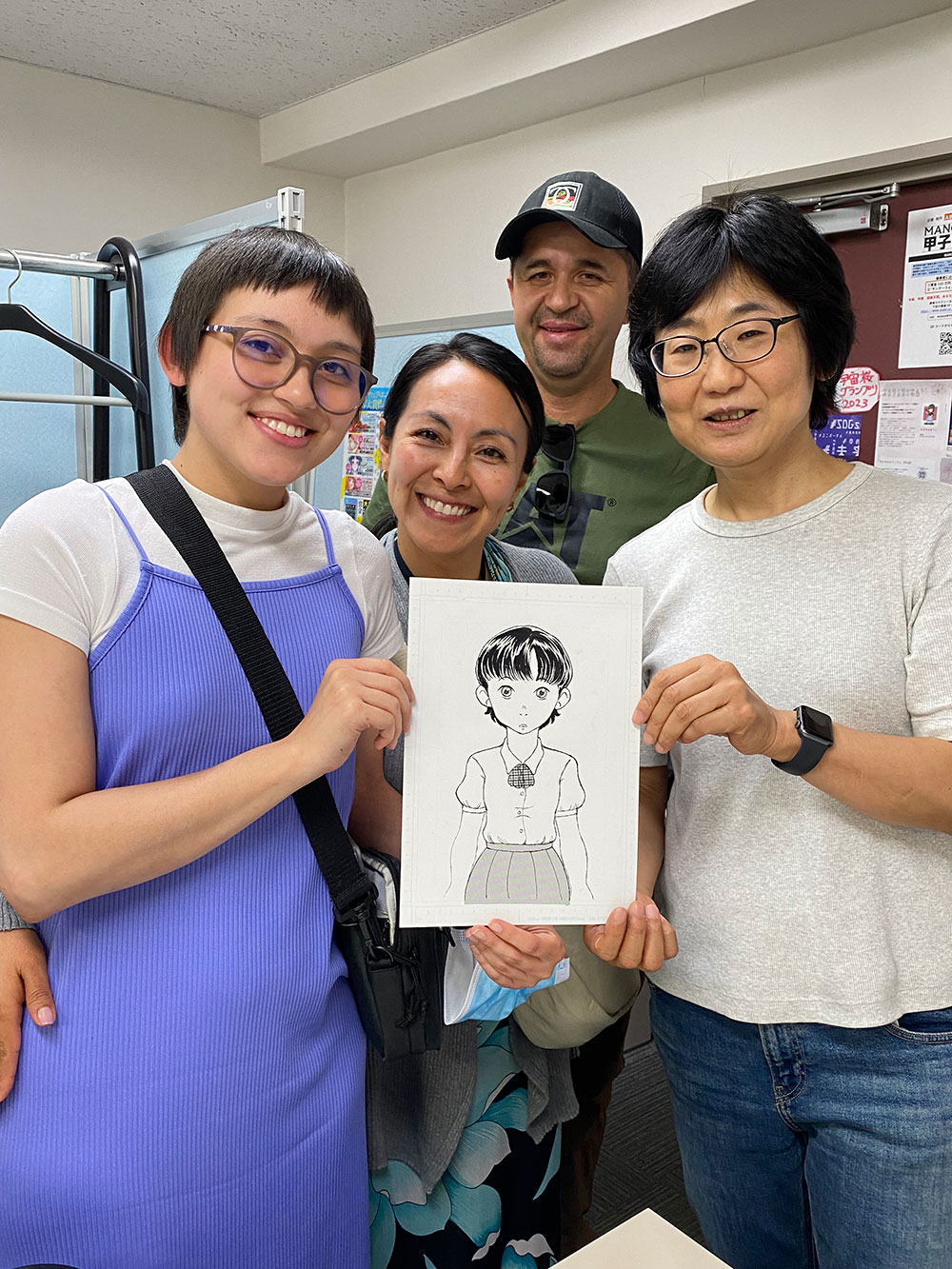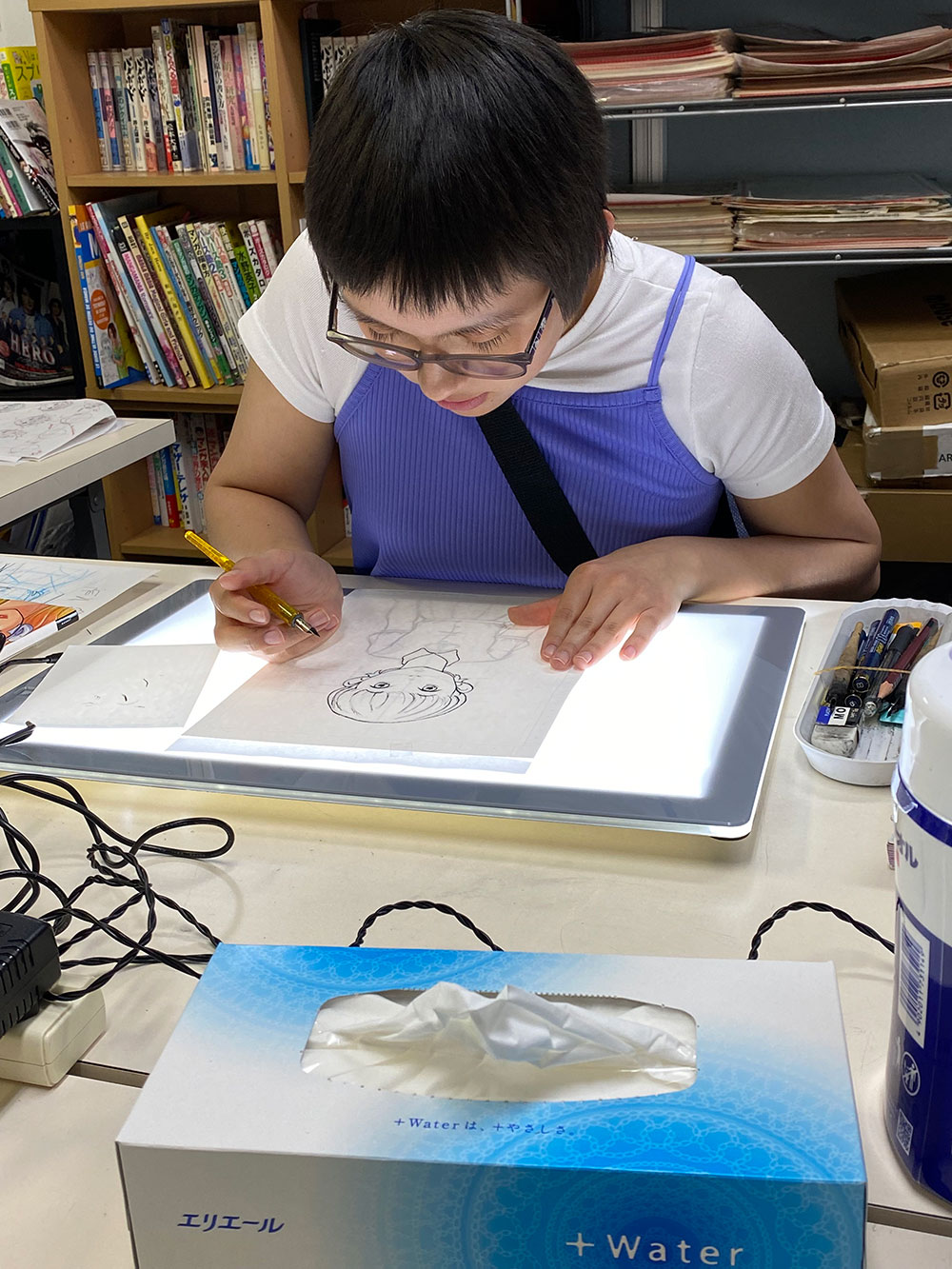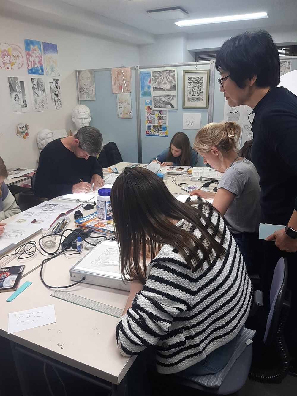 After a simple lecture and Q&A session, we will draw a character. Depends on the student revel, the school offers a sample drawing, or printed line art for paint and screen tone work. Then, using manga tools, we will ink the art and put on finishing touches (Beta, whites, tone work). Depending on the participant’s level they might not finish in one class.